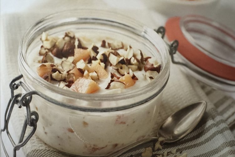 - Die Haselnüsse über den Frühstücksquark streuen und sofort servieren.