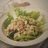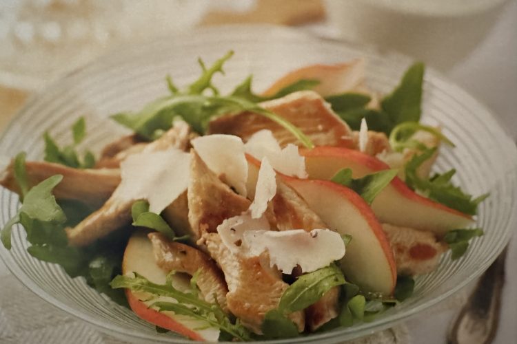 • Das restliche Öl in einer Pfanne erhitzen und die Putenstreifen darin ca. 3-5 Minuten rundherum anbraten. Danach mit Salz, Pfeffer und Zitronenschale würzen. Alles auf den Salat geben und mit Parmesan bestreuen.